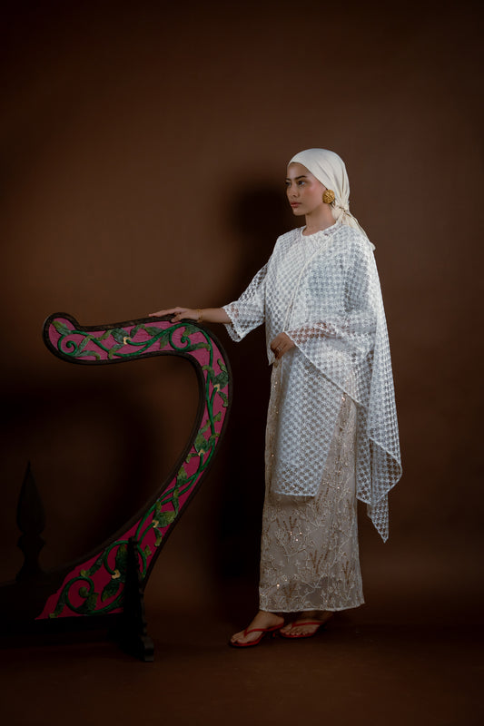 Selendang Rindu Lapis Bunga Putih Nipis