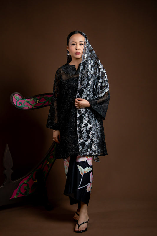 Selendang Rindu Lace Hitam Perak