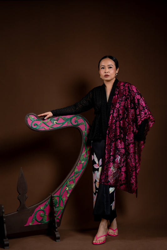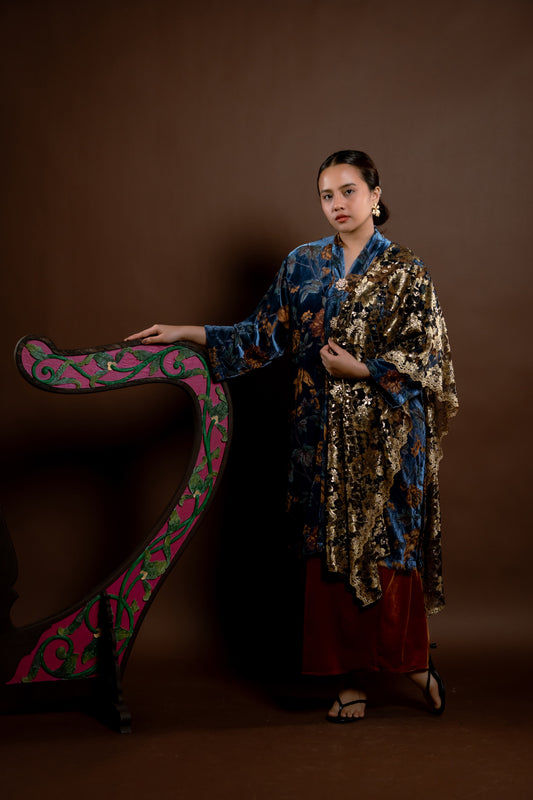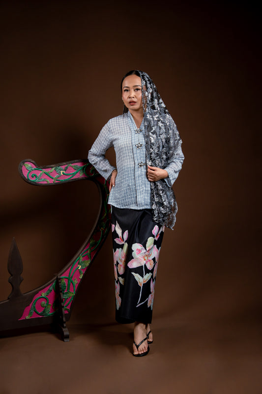 Selendang Rindu Lapis Bunga Hitam Gangsa