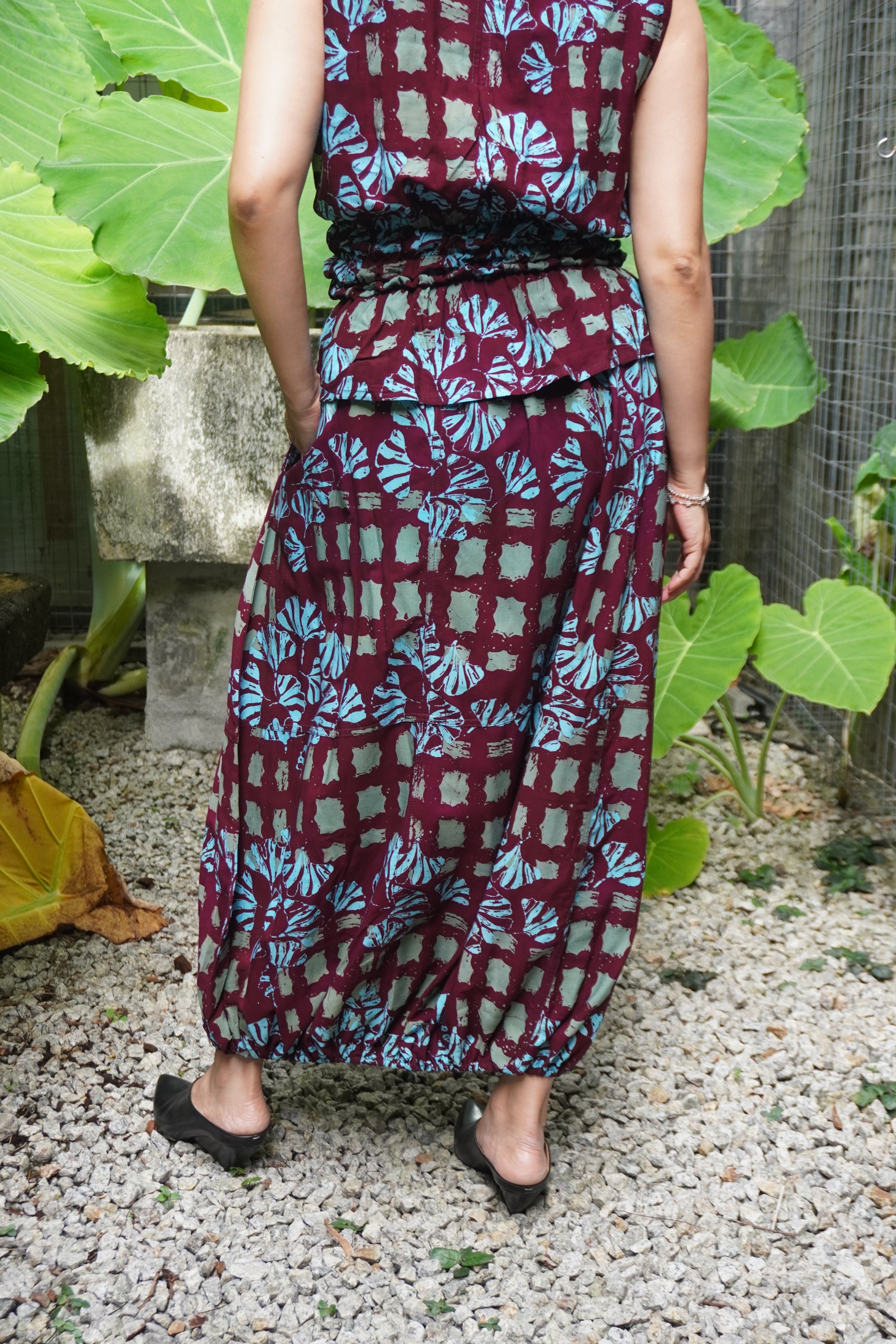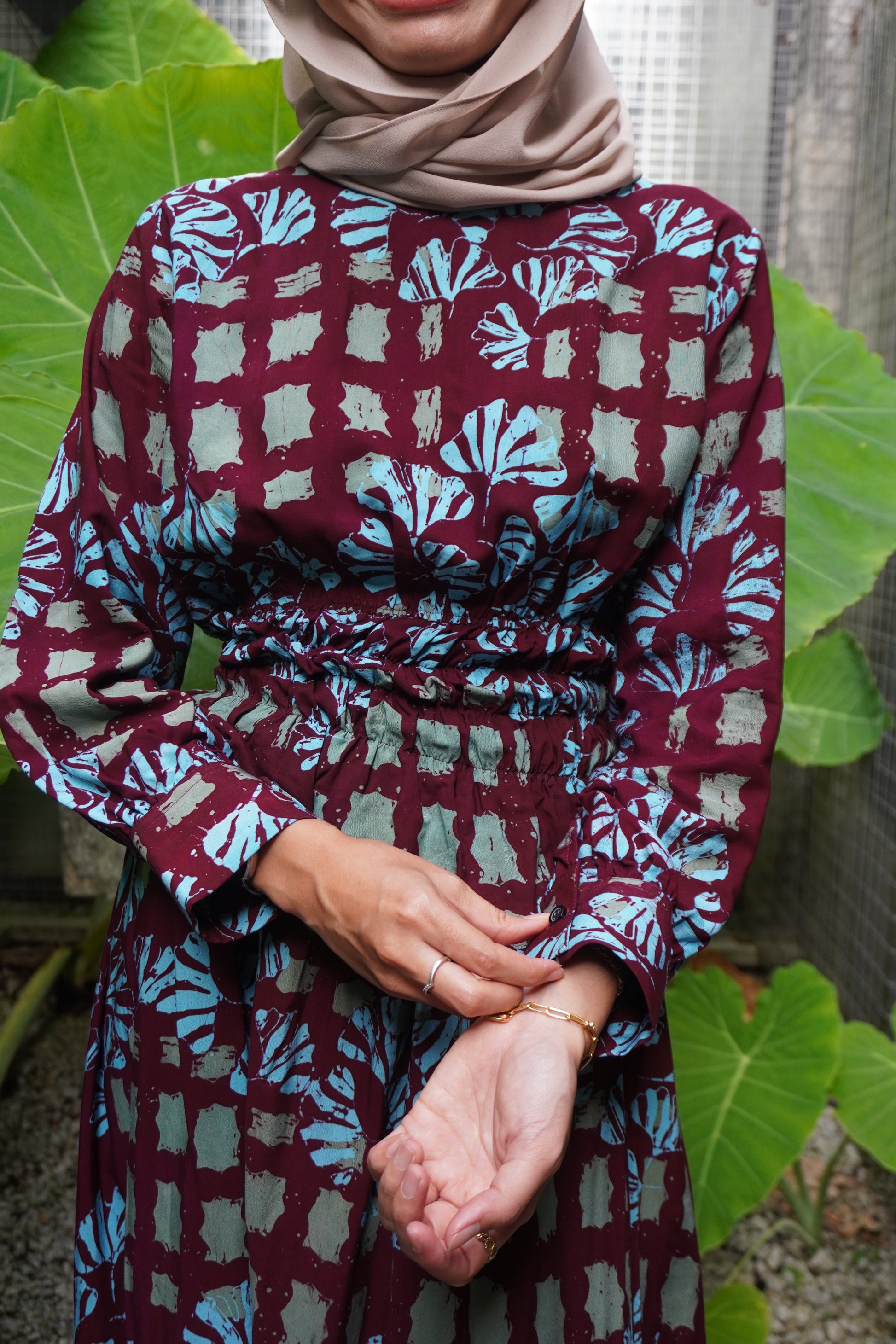 Dihasilkan menggunakan batik cap dari Kelantan, setiap helaian dicap secara manual, menjadikannya unik dan tiada dua yang serupa.
