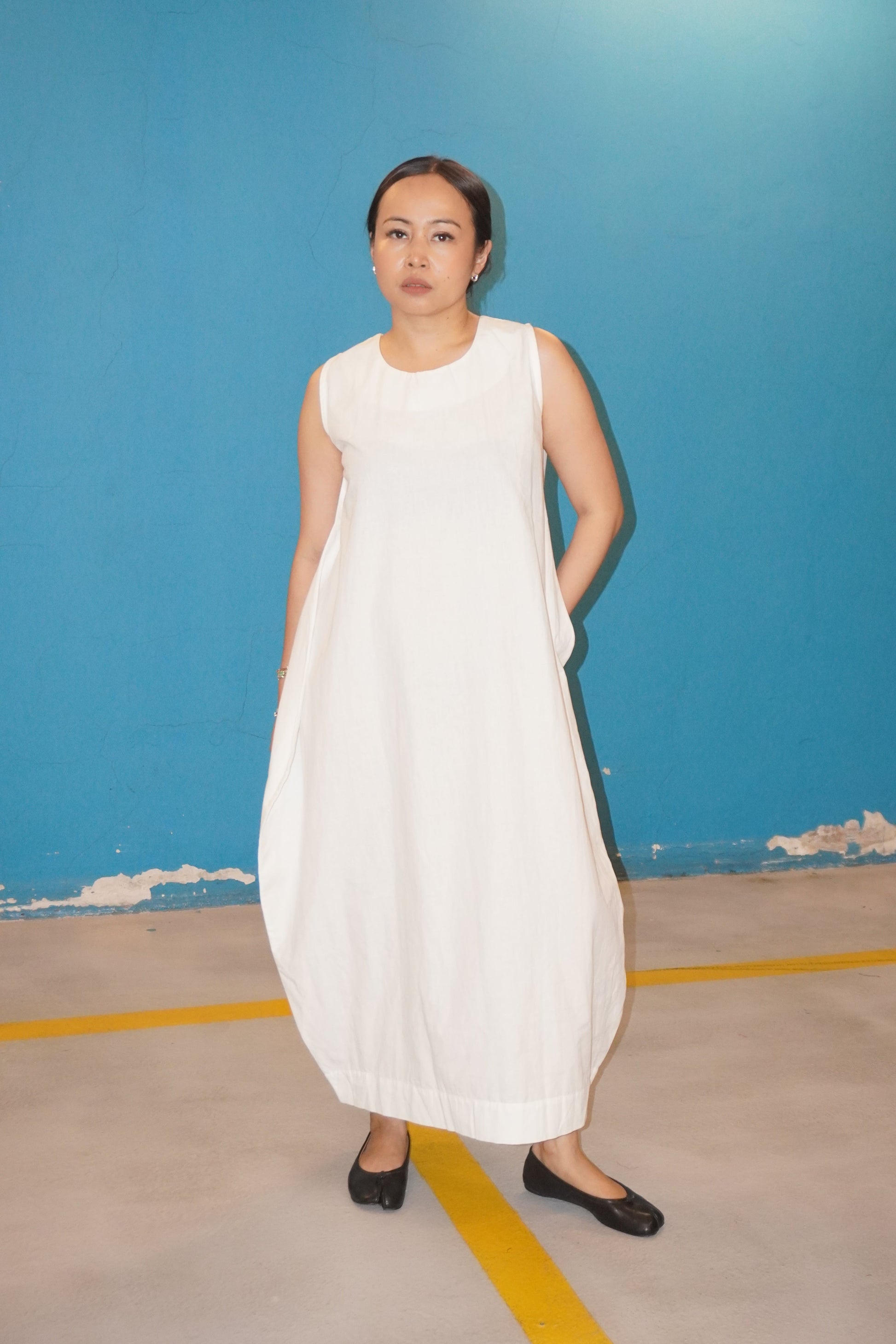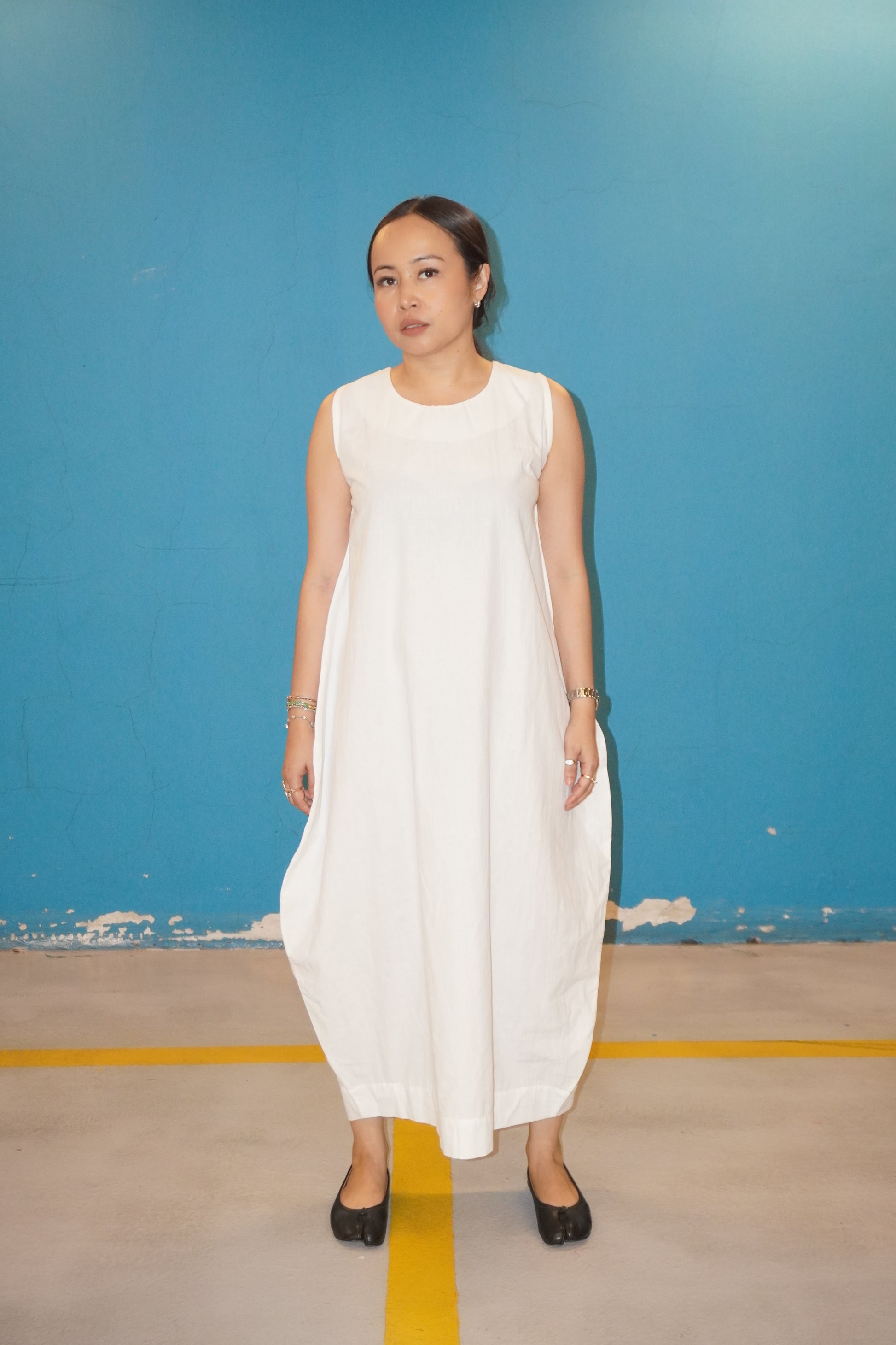 Dress ini direka dengan potongan yang longgar namun berstruktur, memberi siluet moden yang versatil. Cukup santai untuk hari biasa, cukup terletak untuk acara bergaya. Fabrik yang ringan memastikan keselesaan, sementara rekaan oversized di bahagian paha memberi sentuhan kontemporari.
